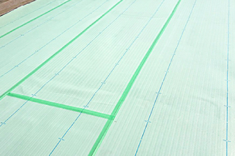 対する通気工法(絶縁工法)は、下地と防水層の間に別の層を挟み込む工法です。そうすることで下地の影響を受けることなく施工ができます。(シート防水では機械的固定工法とも)